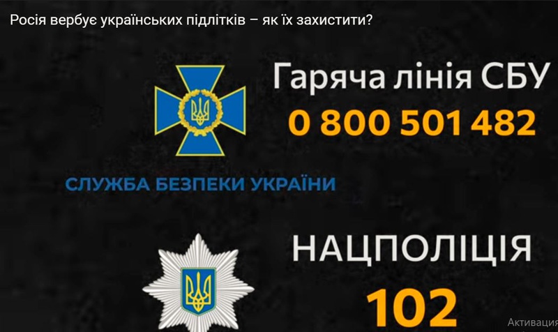 Щодня через комп’ютерні ігри, чати та соцмережі російські спецслужби намагаються завербувати українських підлітків для вчинення злочинів проти України. Пропонуючи «легкі гроші», ворог просить сфотографувати військові об'єкти, підпалити авто ЗСУ, перенести пакунок з вибухівкою або вчинити інші дії, які законодавство кваліфікує як диверсію чи теракт.